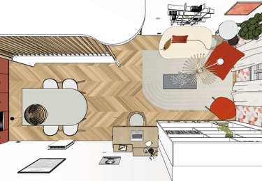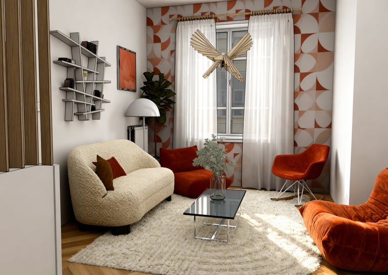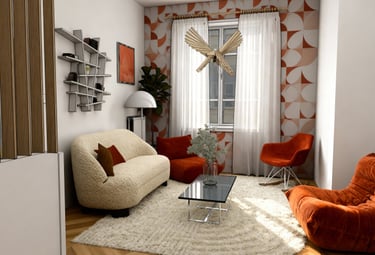 Appréciant le design des années 60 et en même temps le style scandinave, ils ont validé la planche d’inspiration « scandi-sixties » que je leur ai proposée pour le mobilier et la décoration.