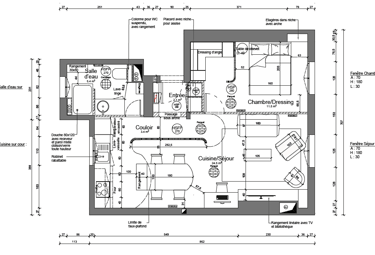 Agencement, aménagement et décoration d’un espace cuisine / séjour d’un appartement au 3ème étage - Paris (3e arrondissement), Ile-De-France.