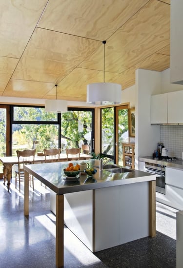 Plafond en contreplaqué : Minimaliste et moderne, il convient aux intérieurs design et épurés.