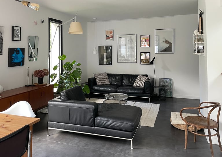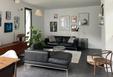 Il s'agit ici d'un projet un peu particulier, puisque qu'il s'agit de notre "home sweet home" ! Nous souhaitions aménager notre extension destinée à accueillir les coins salon et salle à manger ; nous voulions un projet de style vintage, favorisant les pièces de mobilier de seconde main.