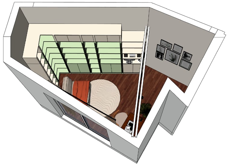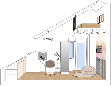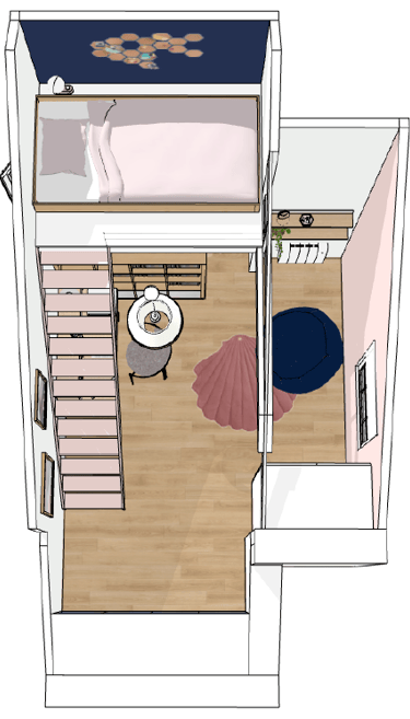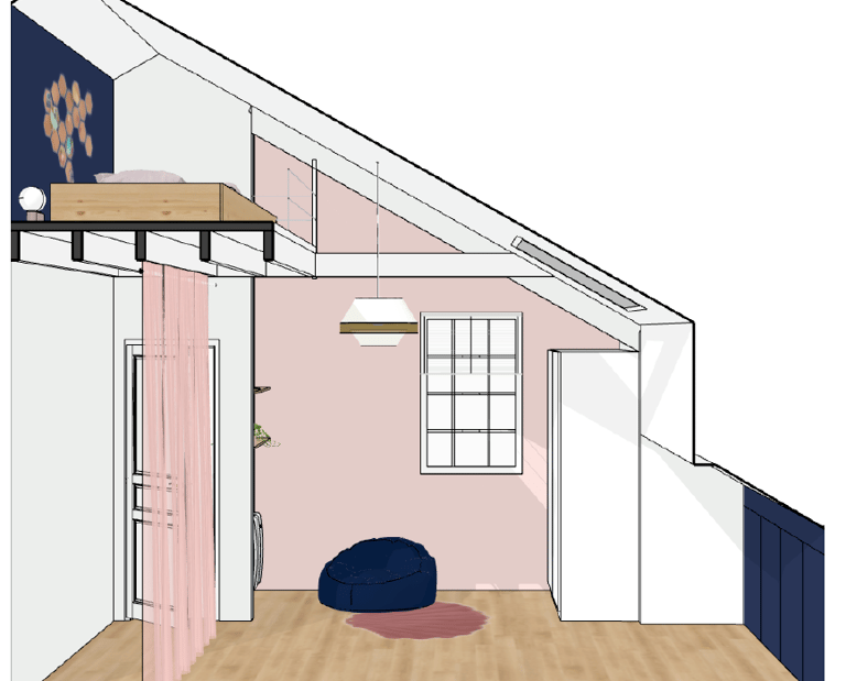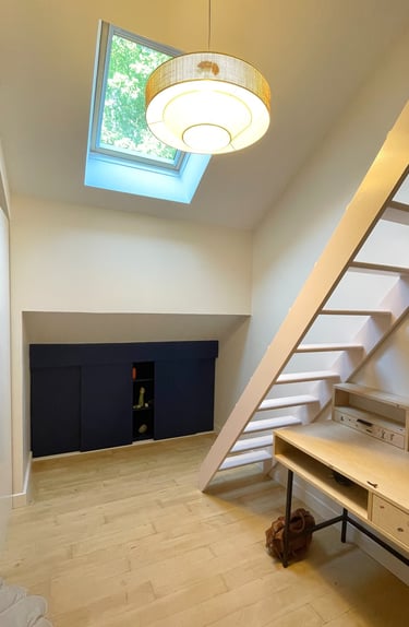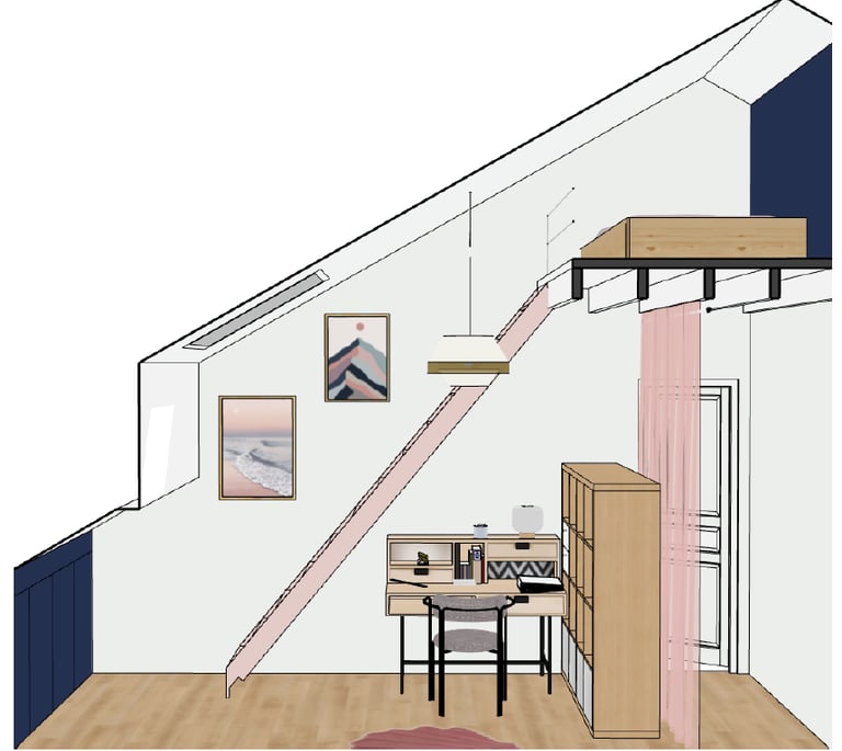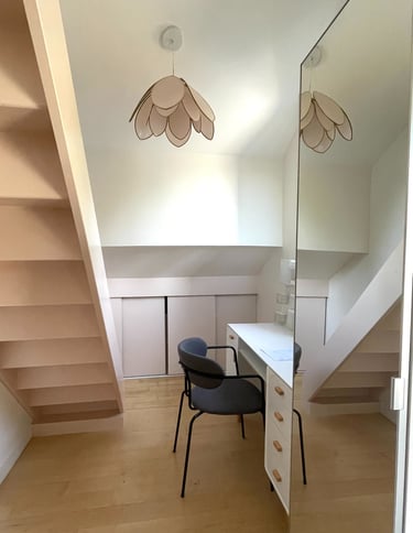 Projet d'architecture d’intérieur (rénovation, aménagement) et décoration de quatre pièces (deux chambres, une salle d'eau et un bureau) + suivi de chantier – Orsay, Essonne, Ile-De-France