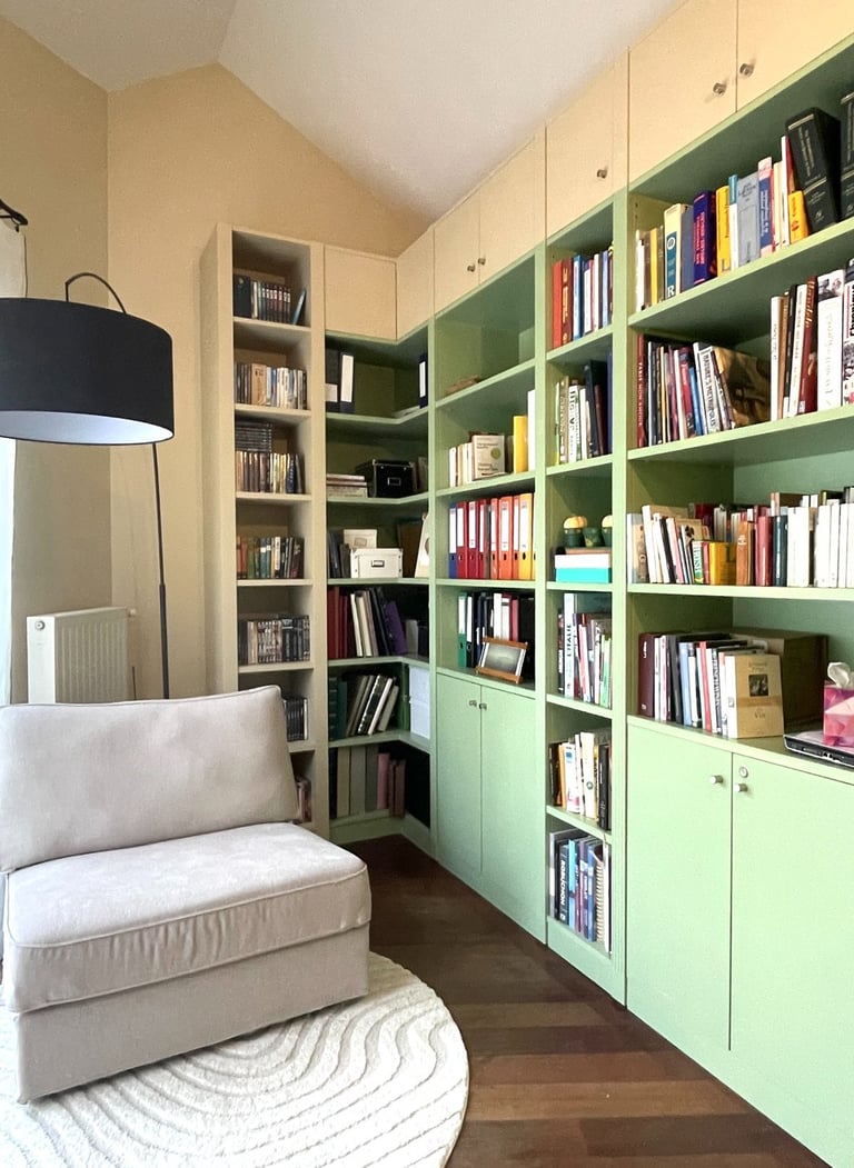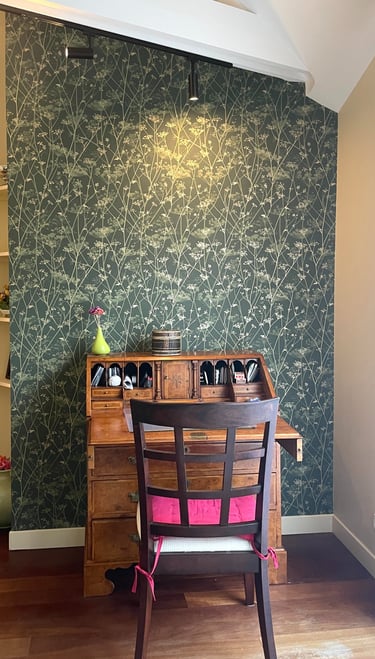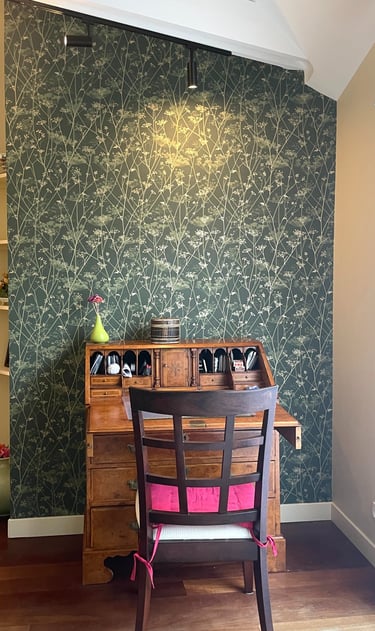 • Pour le bureau, une pièce plus mature, combinant confort et caractère, inspirée par les codes de l’Art déco et du Bauhaus, autour de teintes vertes et chaleureuses.