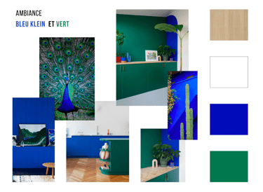 Proposition d'une planche d'inspiration pour réfléchir à la nouvelle ambiance colorée de la pièce