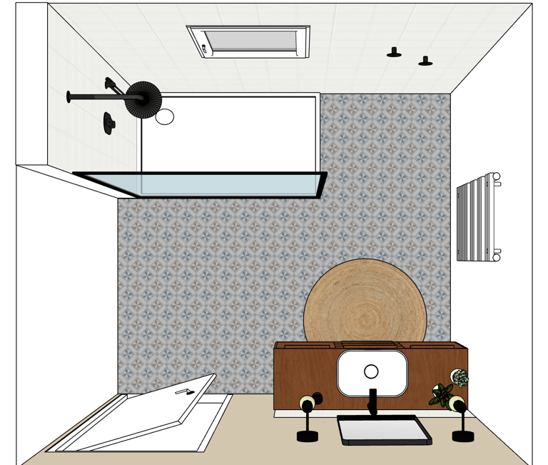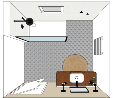Les clients souhaitaient rénover leur salle d’eau pour la mettre au goût du jour. Ils ne souhaitaient garder ni les carrelages de sol et muraux, ni le meuble de salle de bain et les équipements.