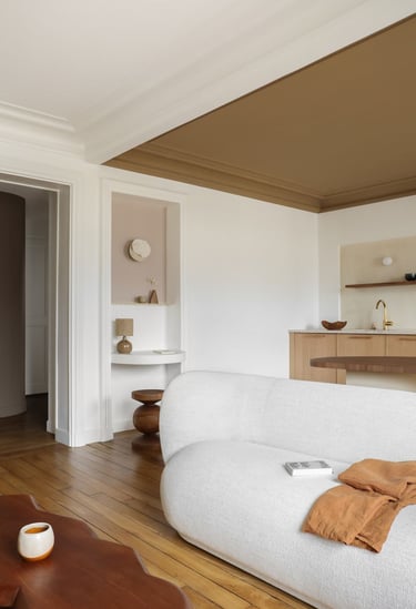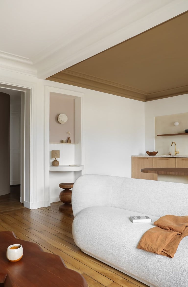Quand le privilégier ? : Dans des pièces aux plafonds bas ou peu lumineuses, le blanc ou les tons très clairs permettent de « repousser » visuellement le plafond, créant une sensation d’ouverture.